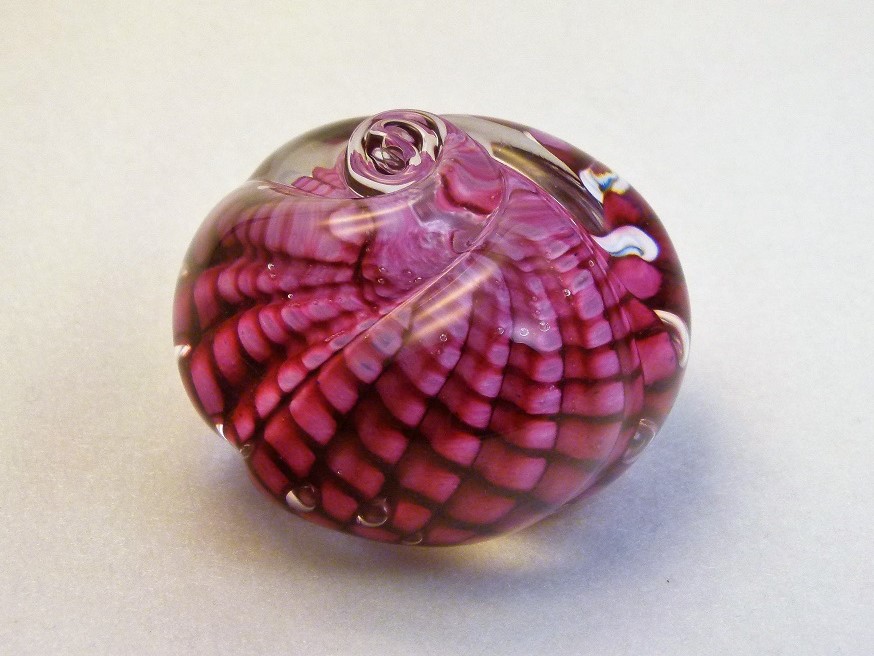 Inspiriert von der Natur hat dieser Briefbeschwerer die geschwungene Form einer karibischen Muschel. Das innere Farbspektakel mit einem Kranz von Luftbläschen harmoniert perfekt mit der organischen Aussenform.