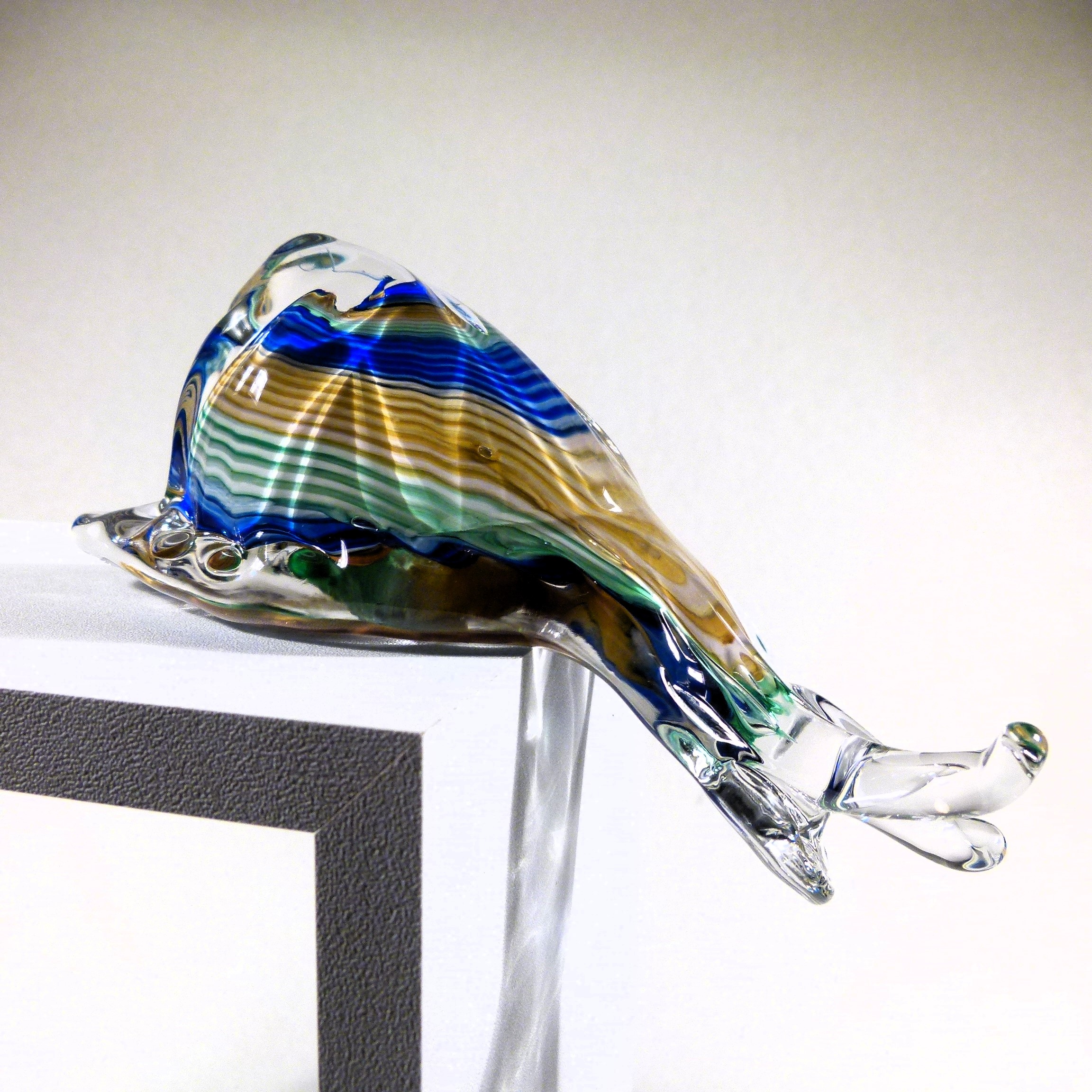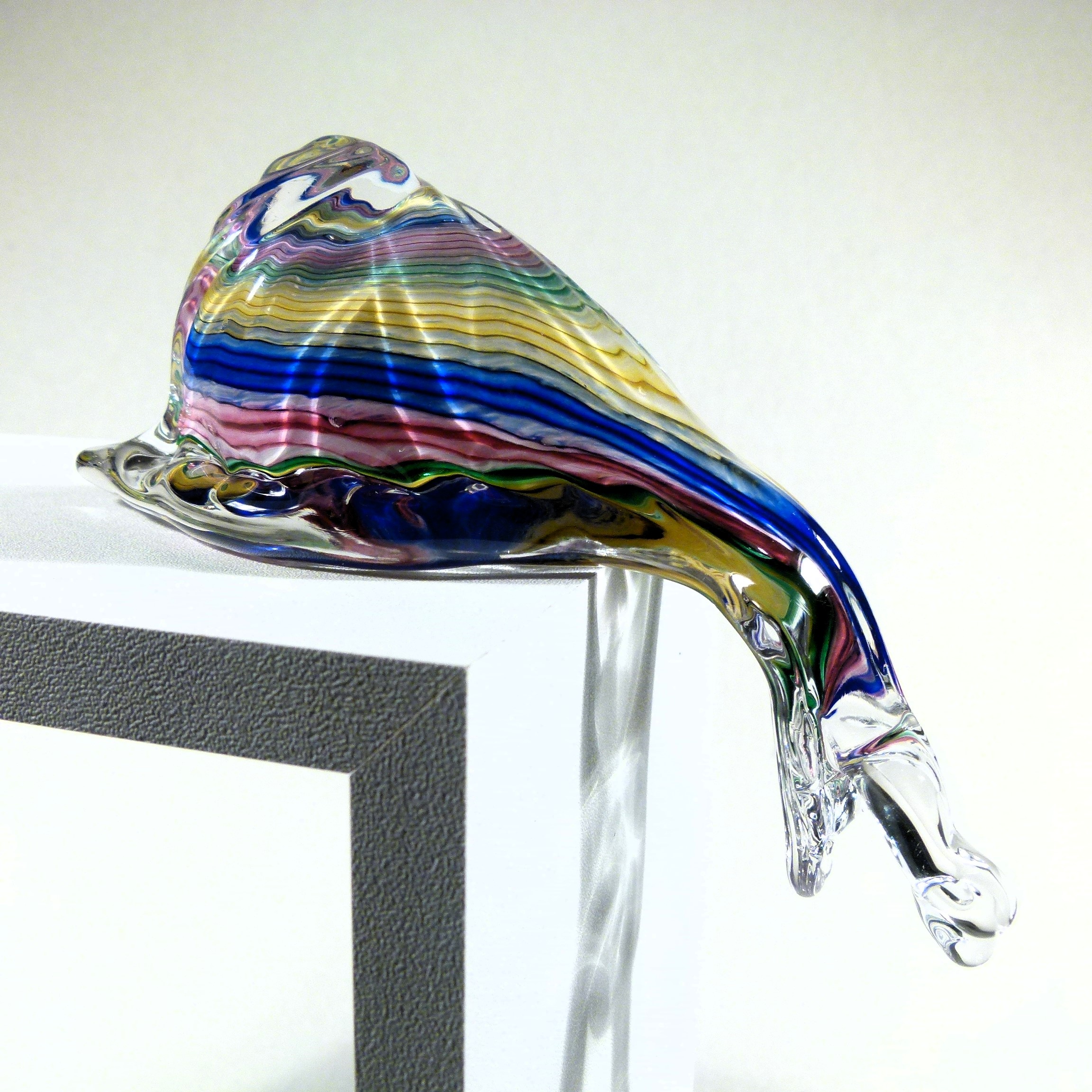 Freihand geformt aus massivem Kristallglas mit Farbglas, hat jede Schnecke ein brilliantes Farbenspiel im Inneren mit filigranen Linien.
