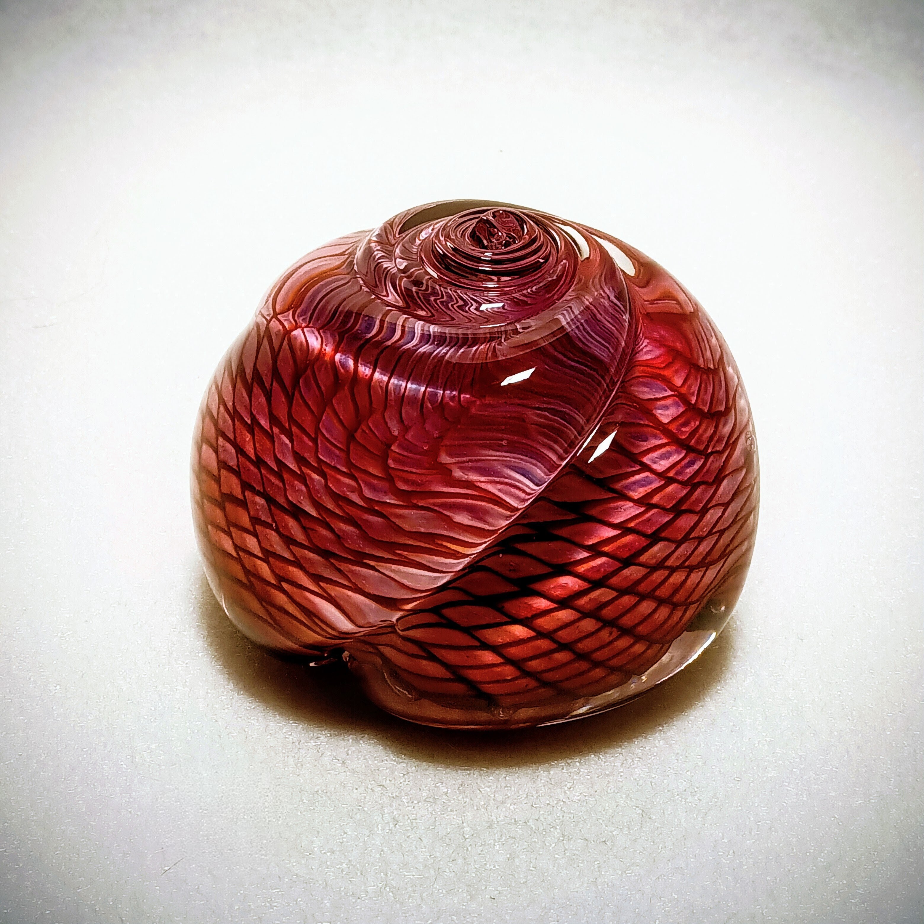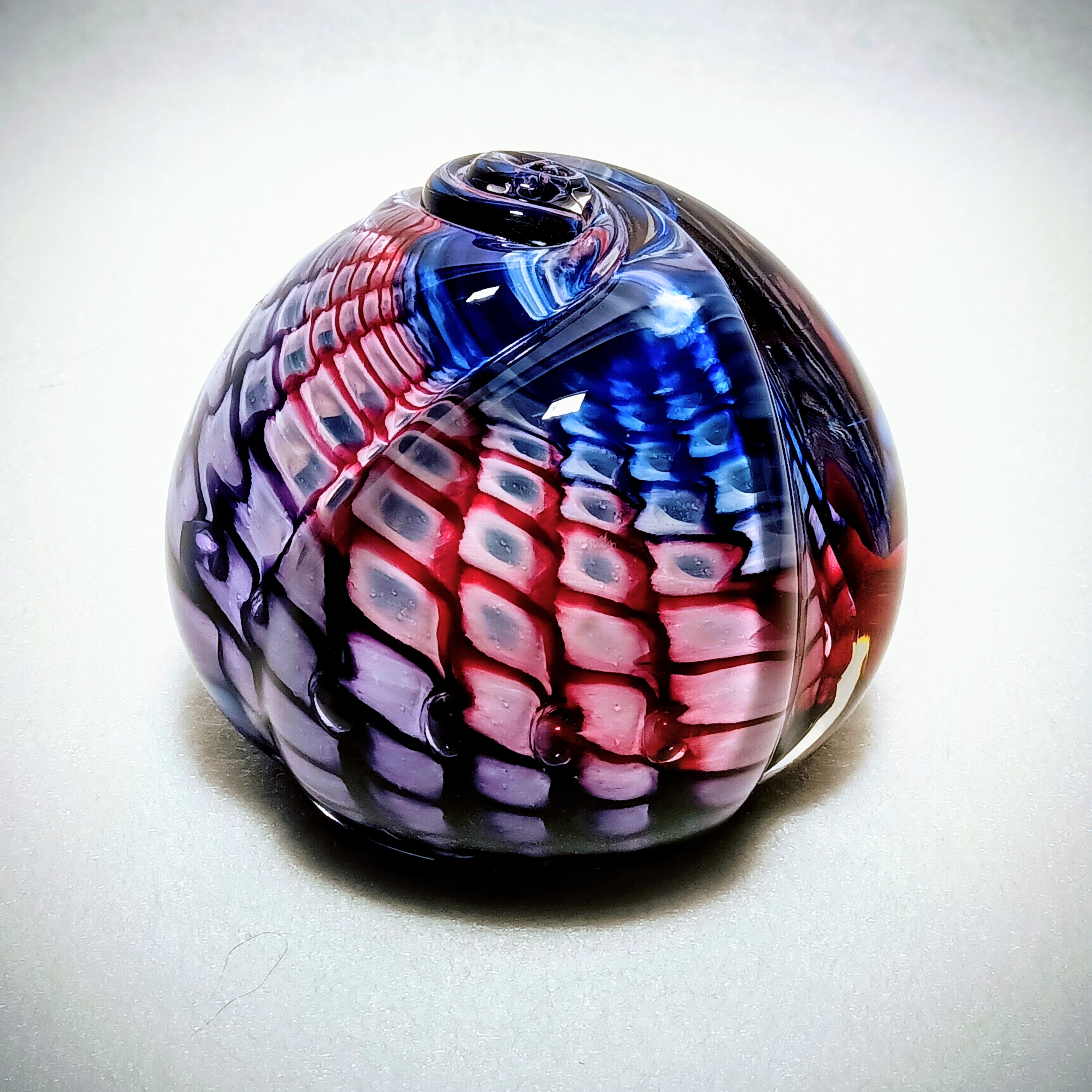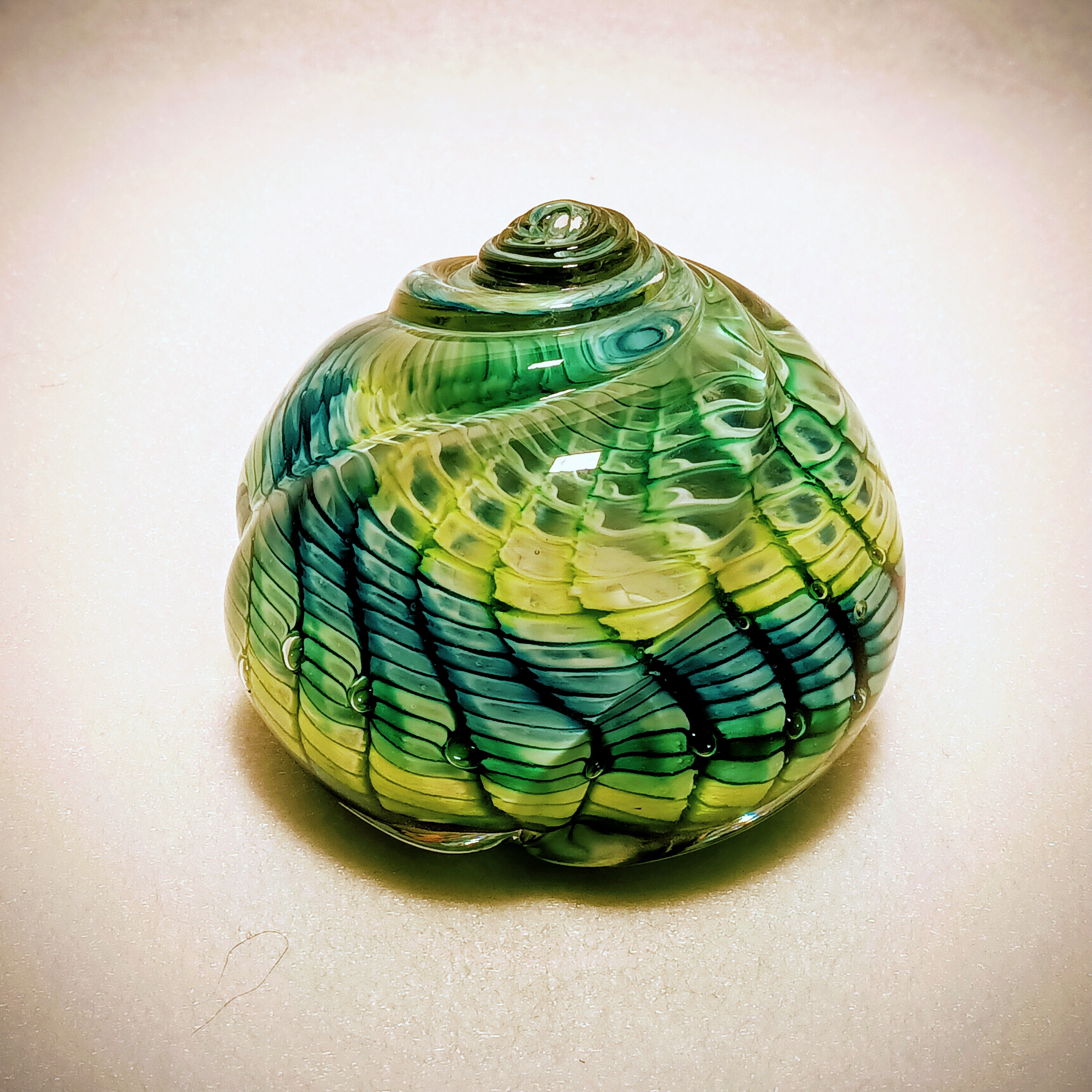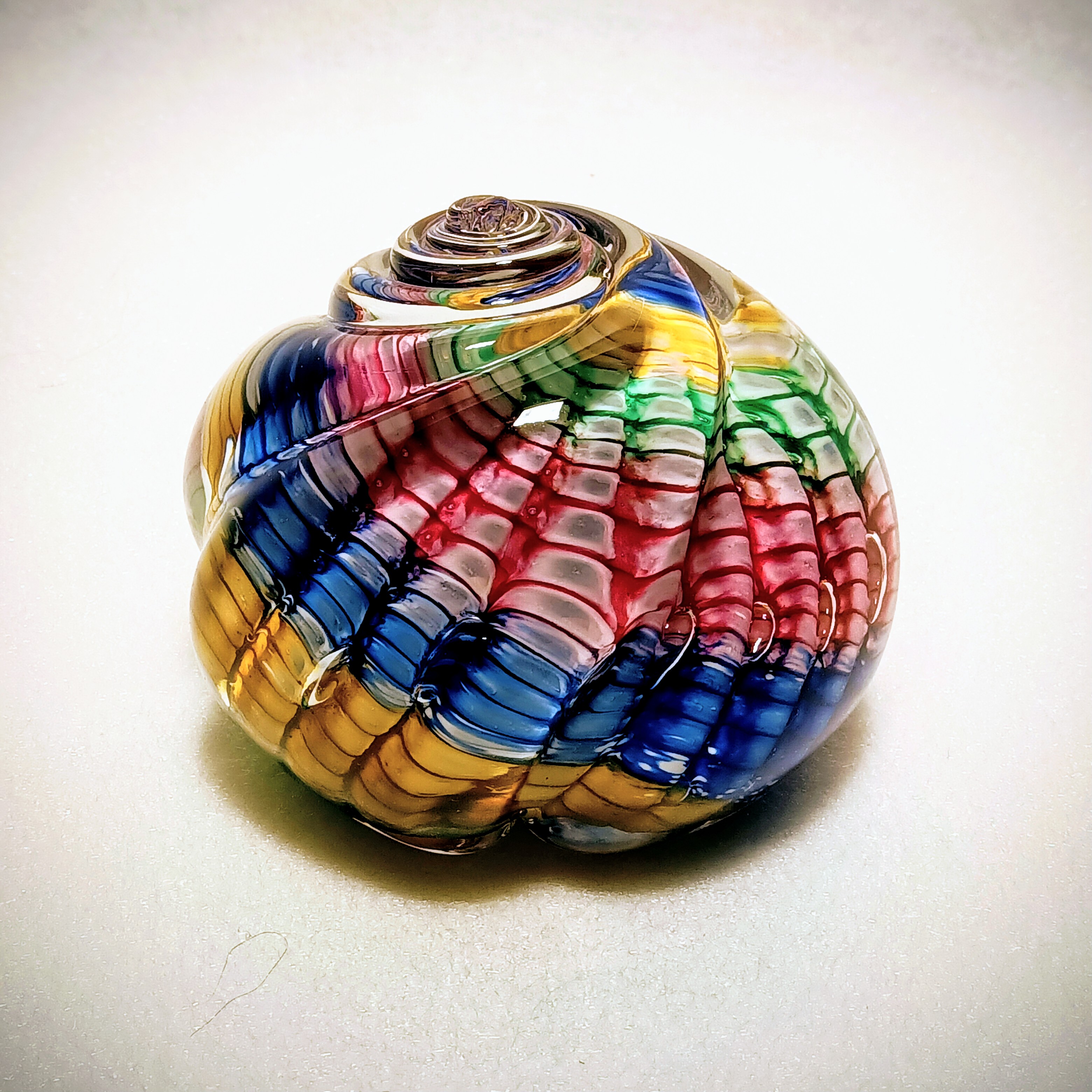 Das innere Farbspektakel mit einem Kranz von Luftbläschen harmoniert perfekt mit der organischen Aussenform.