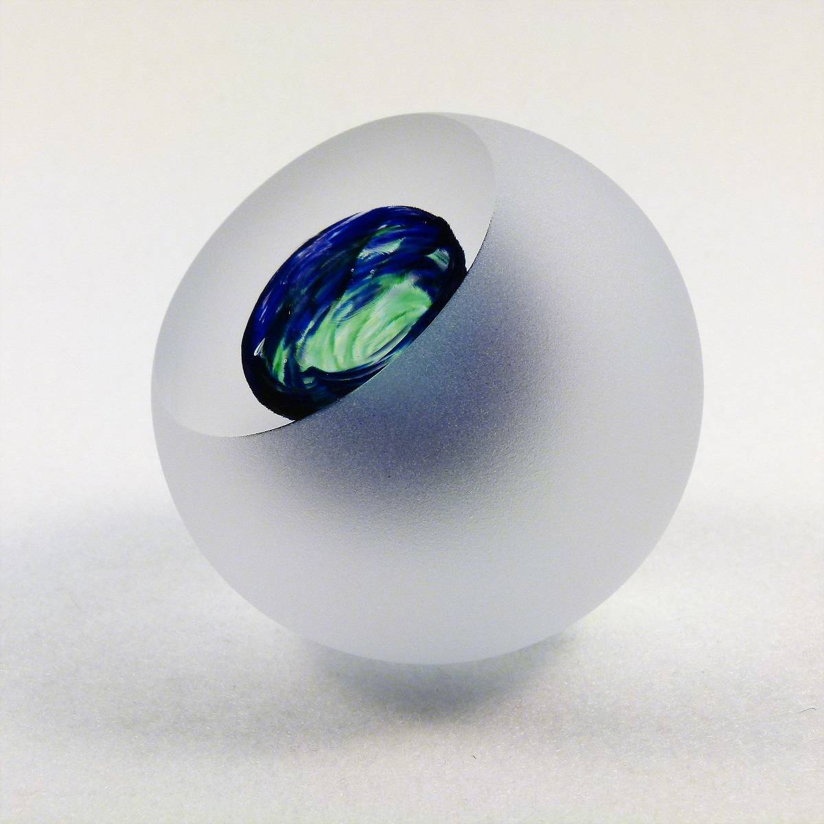 Ein Schlifffenster lässt einen tief in das Innere der Glaskugel blicken.
