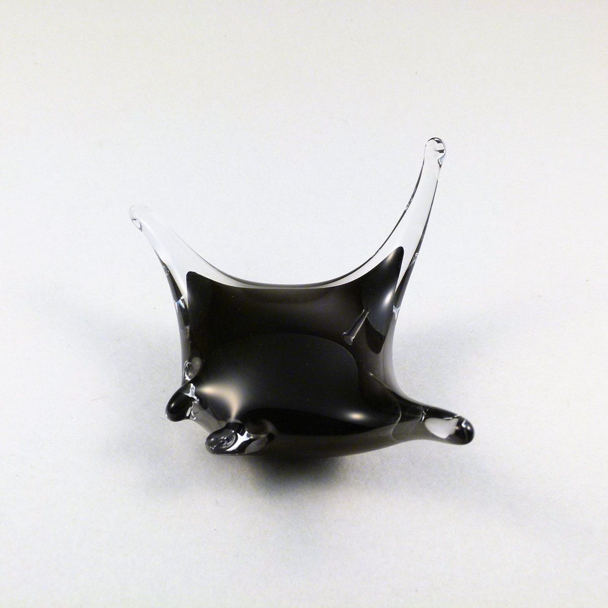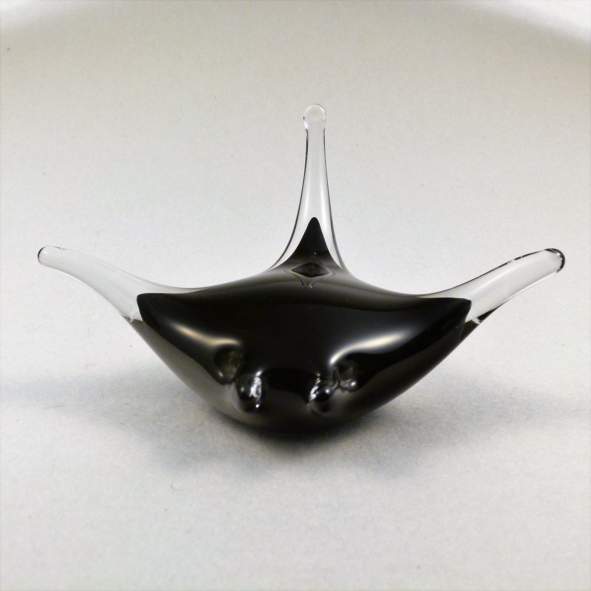 Von kreativer Künstlerhand gefertigt ist dieser Rochen aus schwarzem Farbglas und Kristallglas ein dekoratives Geschenk