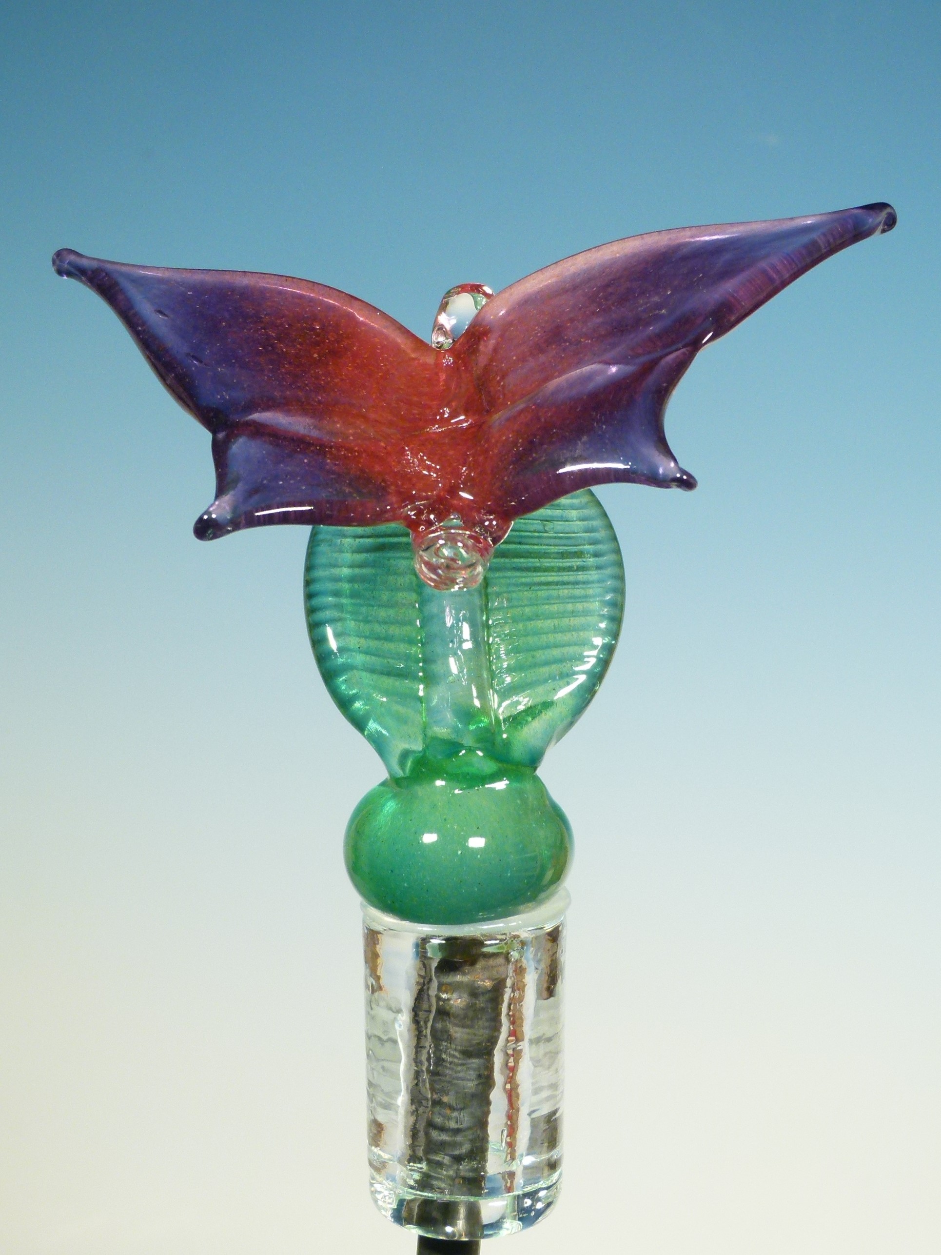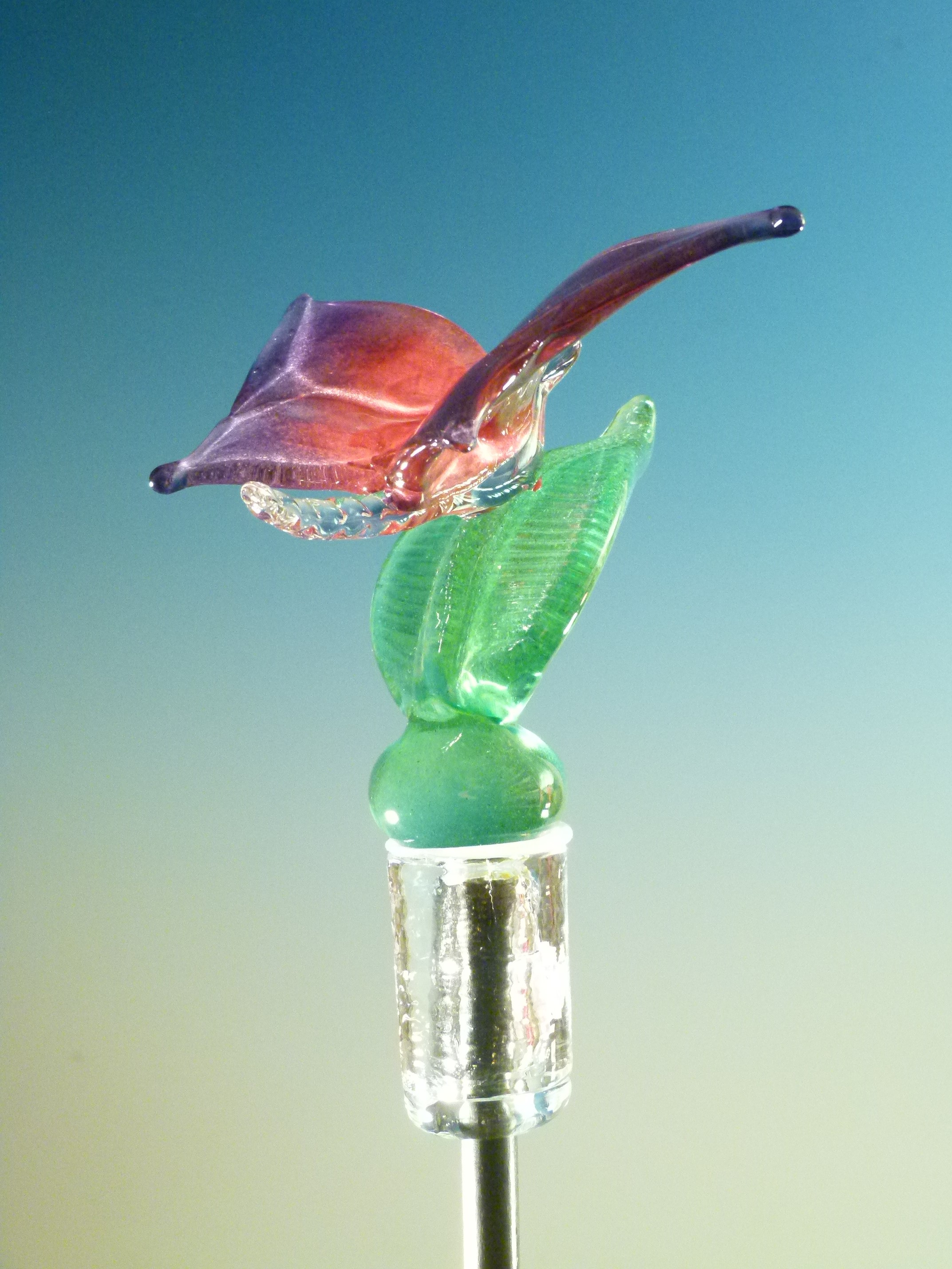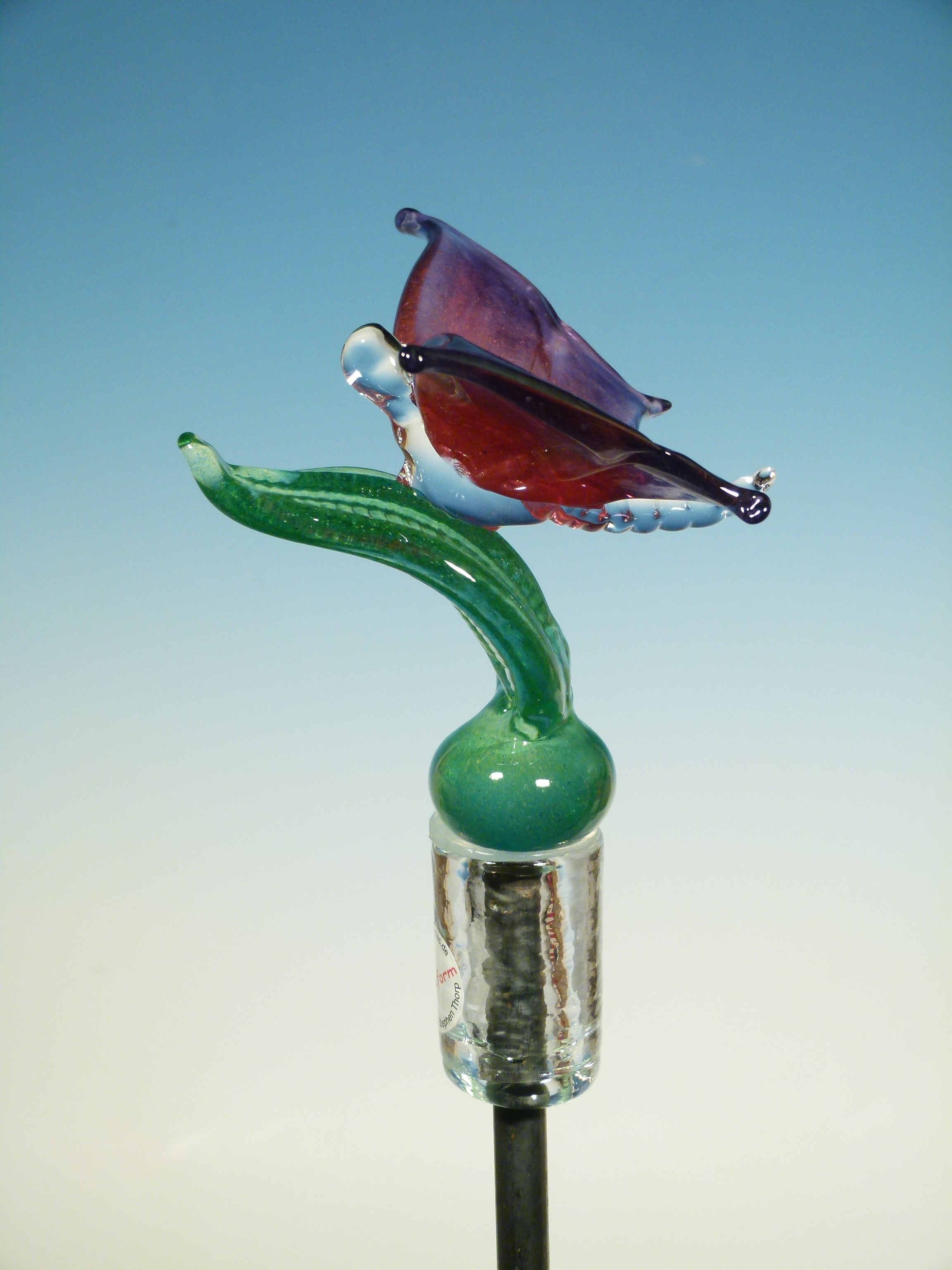 Auch unsere Glasschmetterlinge haben eine Verwandlung vollzogen; aus der flüssigem Glasmasse formen wir sie von Hand zu filigranen Gartenfiguren.
